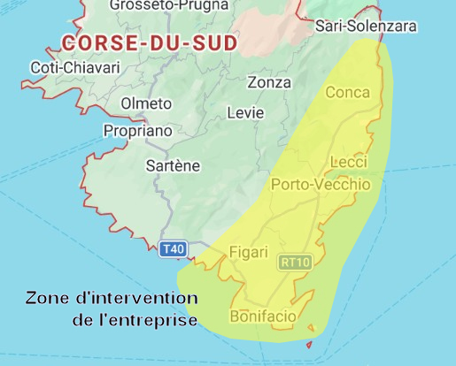 Cet emplacement géographique nous permet d’avoir un rayon d’action allant de Solenzara à Bonifacio/Cavallo et jusqu’à Pianottoli.
