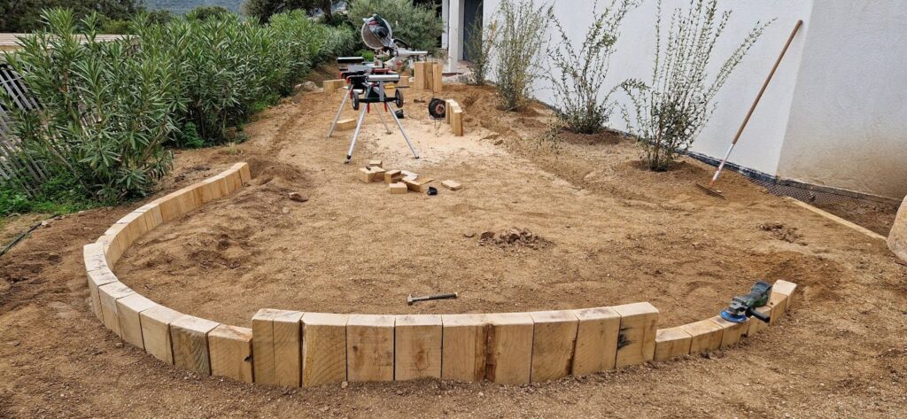 Mise à niveau et agencement des traverses en chêne.