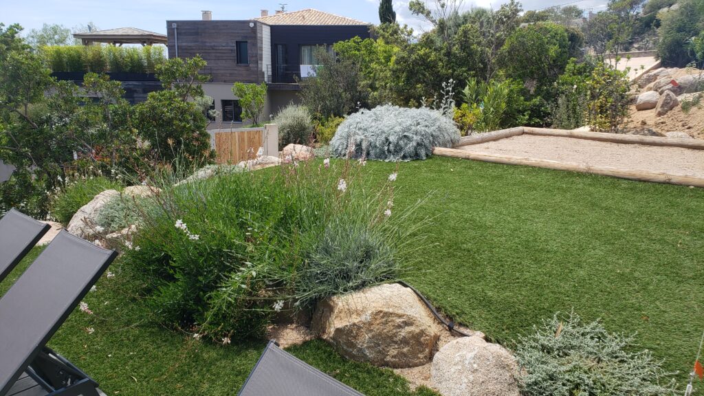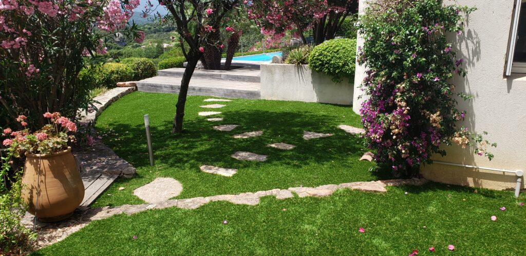 En effet, l’herbe synthétique ne nécessite aucun arrosage régulier, ni frais d’entretien, ni renouvellement de semis, ni apport d’engrais ou de produits phytosanitaires. Tous ces frais disparaissent, dès la première année, avec un engazonnement artificiel.