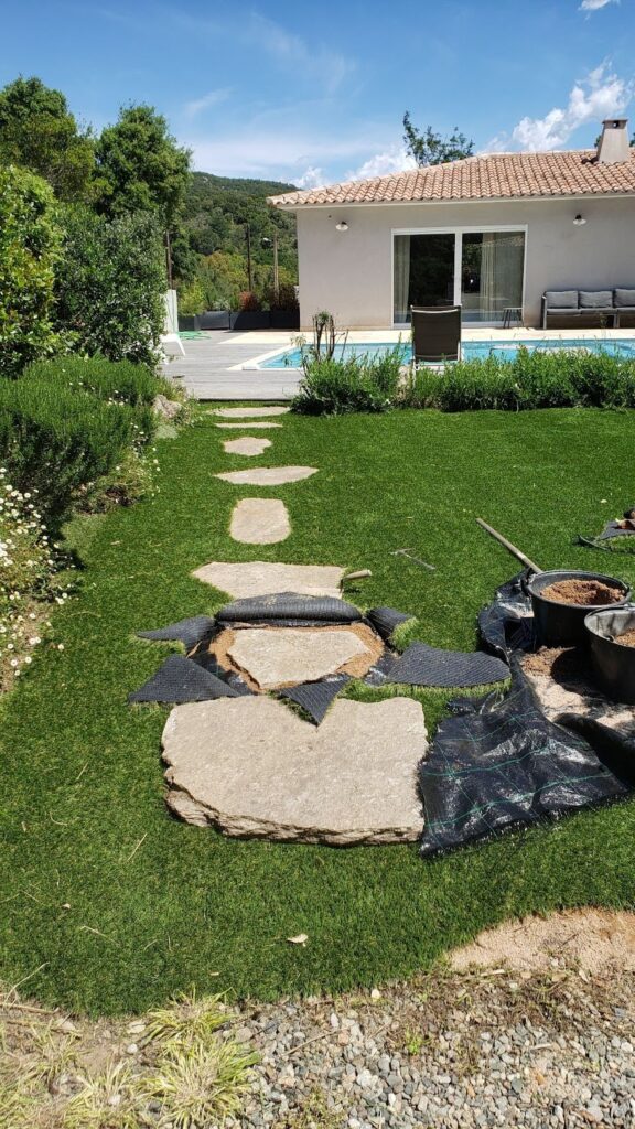 A l’œil comme au toucher, notre pelouse synthétique est d’un réalisme incroyable. Il est loin le temps des gazons synthétiques que l’on repère au premier coup d’œil ! Tous les fabricants, français et européens ont énormément progressé dans le rendu visuel et tactile de leurs produits.
