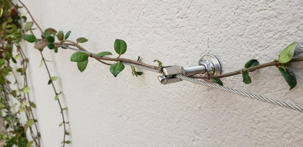 Les systèmes de palissage que nous installons étant entièrement en acier inoxydable, il n’y a pas de risque de coulures d’oxydation sur les façades et ils sont plus durables dans le temps.
