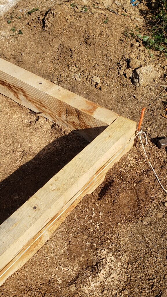 Deuxième piquetage plus précis, déterminant avec précision les angles et alignements au cordeau.