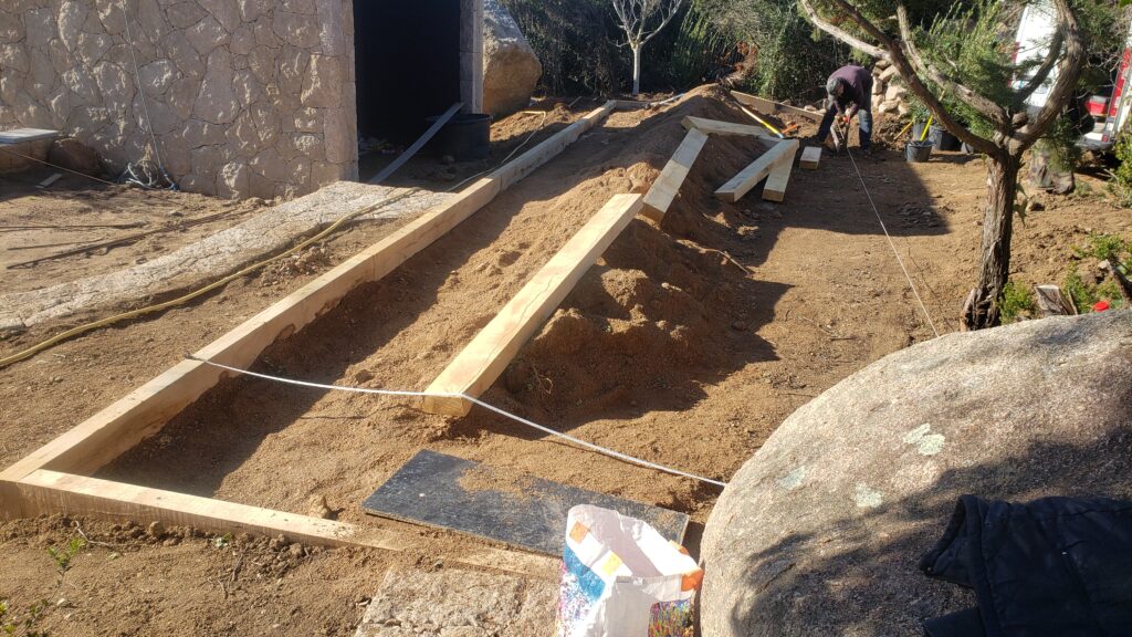 Décaissement sur une quinzaine de centimètres tout en nivelant approximativement.